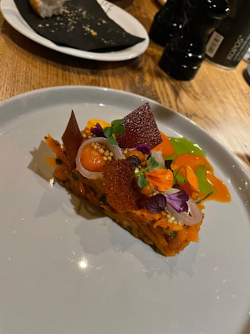 10/10The service was impeccable. The food was very refined, tasty and extremely well presented too. I had 2 glasses of wine: Pinot Noir and Malbec. I was slightly disappointed with the Malbec, but the Pinot Noir was excellent. I enjoyed the vegetarian option. I would definitely come back. The waitress was great.