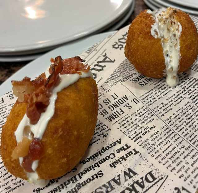 - Crocche' - crocchè di patate, prosciutto cotto, provola, crema di parmigiano, mandorle.