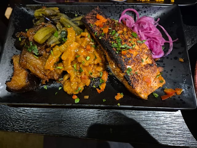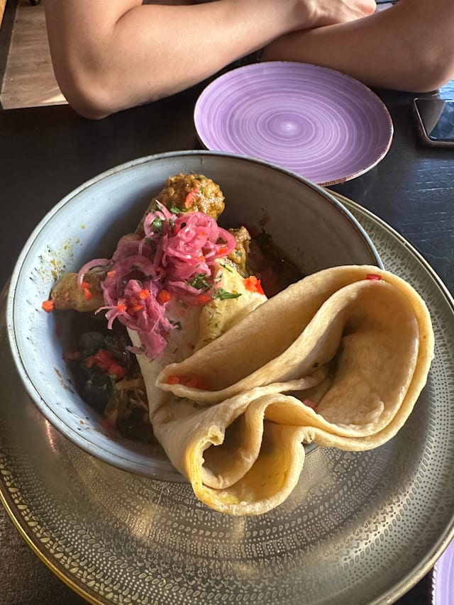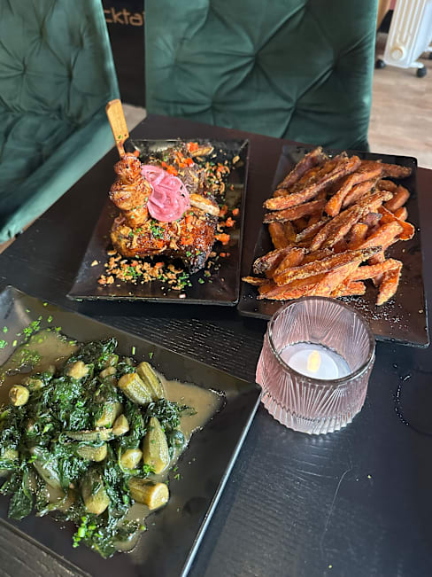 7.5/10The food was nice and tasty. Love the herbs. The Grilled plate was very nice and diverse. Too bad the chicken of the roti wasn’t warm enough for our taste, despite it being very tasty. Also some of the dishes that we wanted to order was not available (lamb roti and fish balls). I did really enjoy the ginger juice. Also thee waiter was very friendly and welcoming!