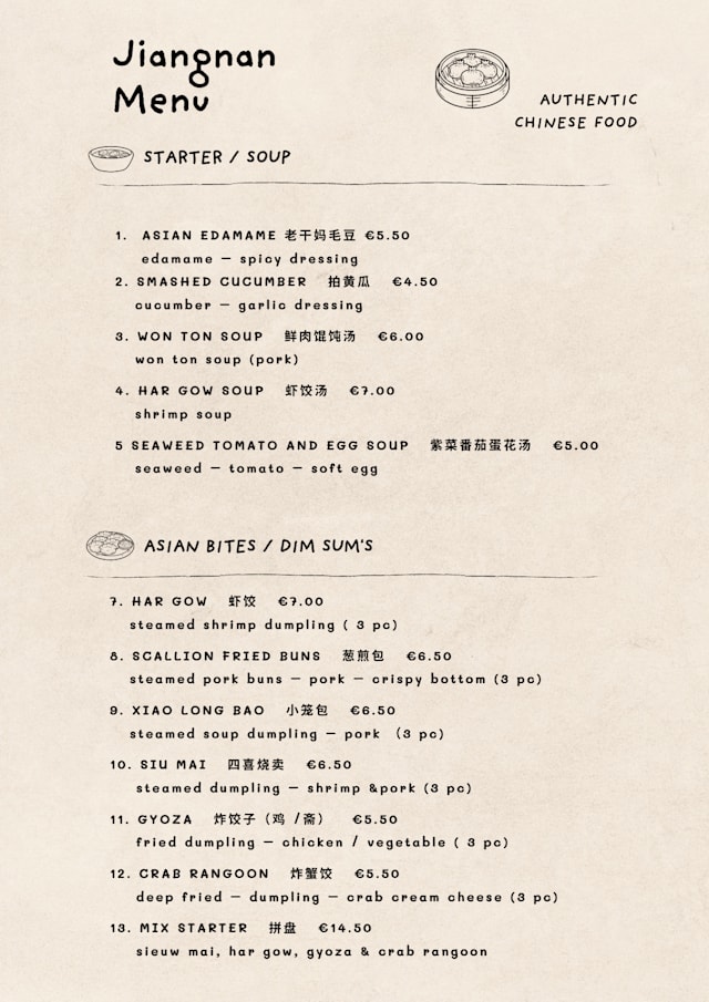 7/10Visited this authentic Chinese restaurant in a nice location near the city center. The interior is warm and cozy, with comfortable chairs and a welcoming atmosphere. The staff was friendly and attentive, which added to the experience. The restaurant was packed with local Chinese guests—a good sign that the food is authentic and appreciated by those who know it best. While the food was nice, it didn’t quite live up to the raving reviews I had read, and it wasn’t exactly cheap. That said, the portions are smaller than what you'd find at a typical Chinese restaurant, but for me, they were just right. The highlight of the evening? The small, pillow-like dumplings filled with beef and served with a delicious dipping sauce—absolutely worth trying! Reservations are definitely recommended, as the place fills up quickly.