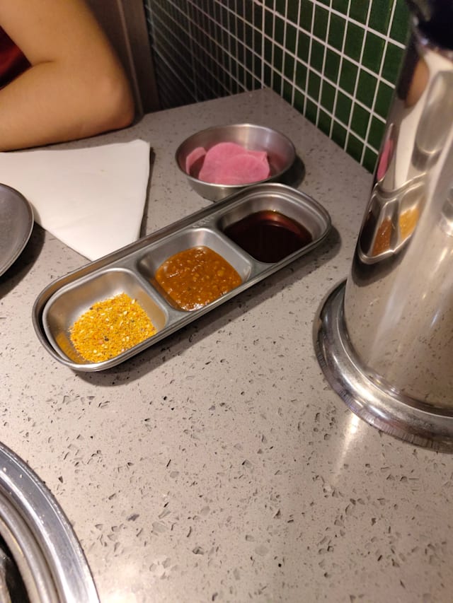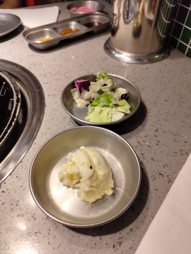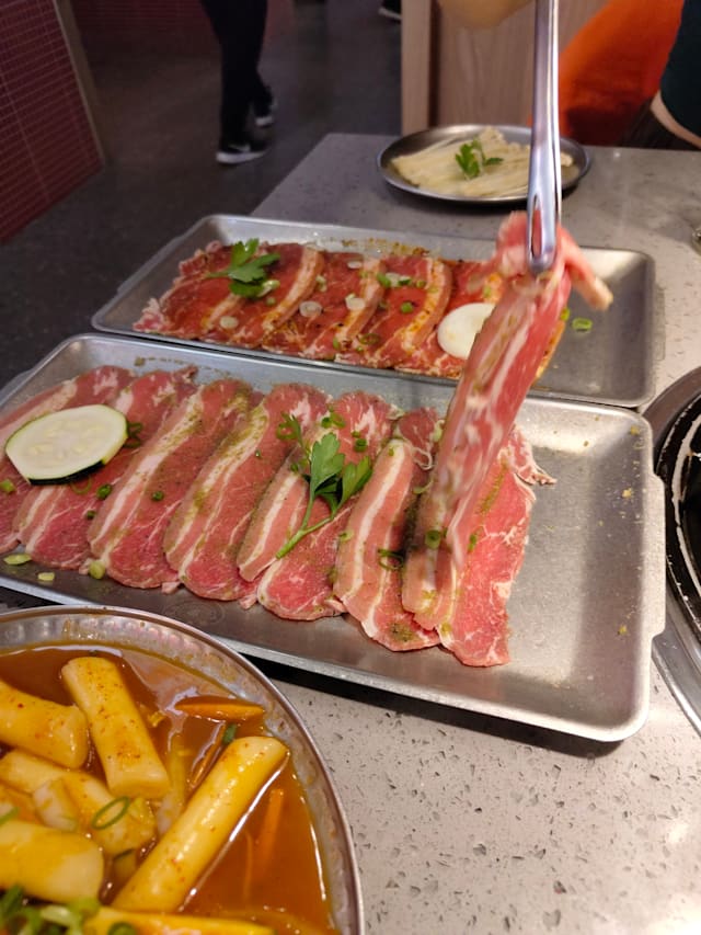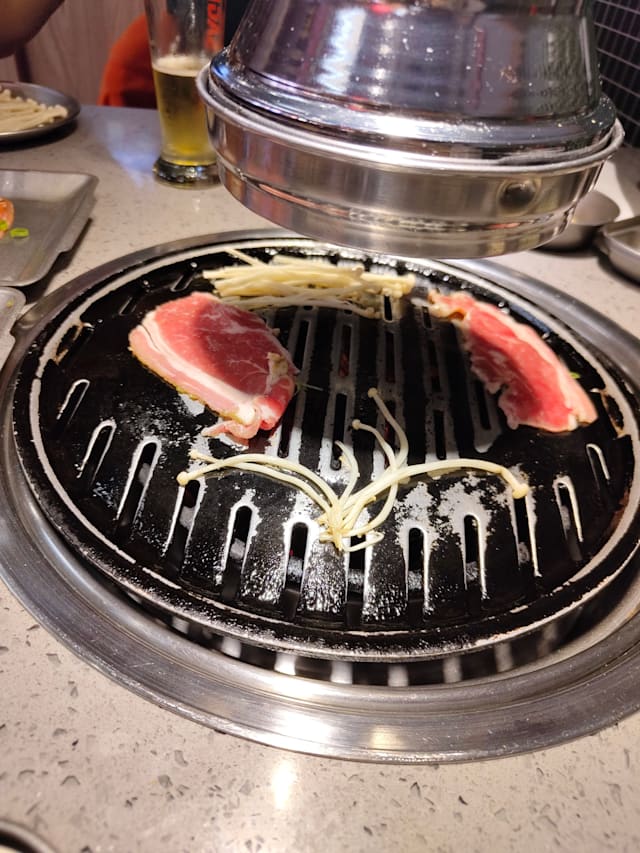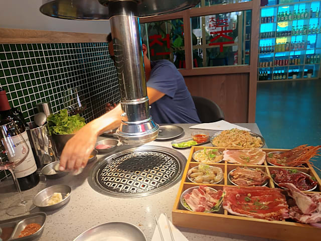 6/10staff OK, 1 or 2 could smile more but did help when asked, the fish and meat are not bad quality , for the price i think could be better though, the small bbq in the table runs from hot coals from the kitchen and doesn't quite have the heat to sear the meats, so it's more stewed , the extraction fan coming down above the bbq is very big and kind of gets in the way of the bbq and the person over from you, the restaurant itself is very bright and looks like a cafe with the window display, a little too pricey for the experience we had .