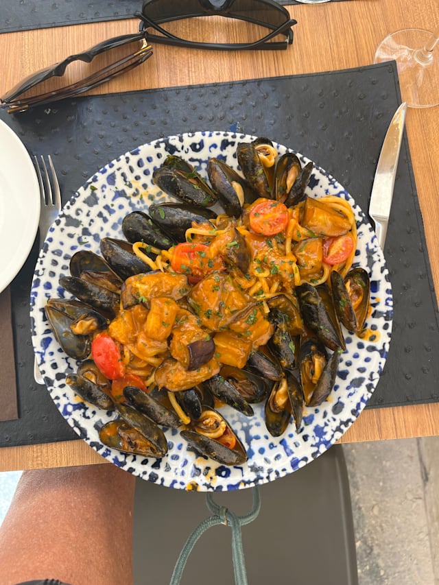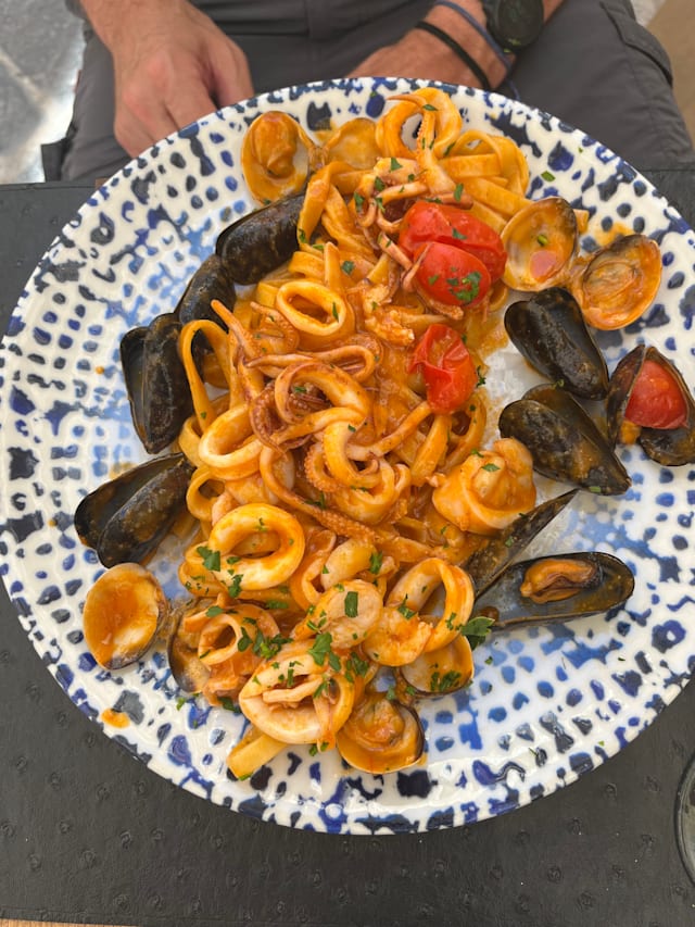 10/10This was an amazing lunch during our day spent in Ortigia. The staff was kind and friendly. Our waiter recommended a wonderful white wine to go with our lunch. My husband and I shared the fish of the day caponata which was delicious! I had the seafood linguine which was amazing with clams mussels shrimp and calamari. He had the pistachio pesto pasta which was excellent. The seafood linguine sauce was incredible and one of the best dishes I have had in Sicily. We also shared the grilled octopus which was a great dish. I would highly recommend this restaurant!! All dishes were local and authentic.