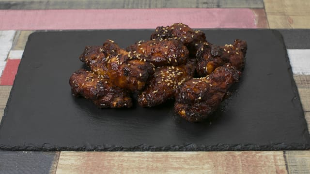 Pan brioche mantecado con nuestra carne mechada 100gr bañada en barbacoa , bacon , huevo y aros de cebolla caseros. Acompañada de una guarnición de patatas fritas caseras.