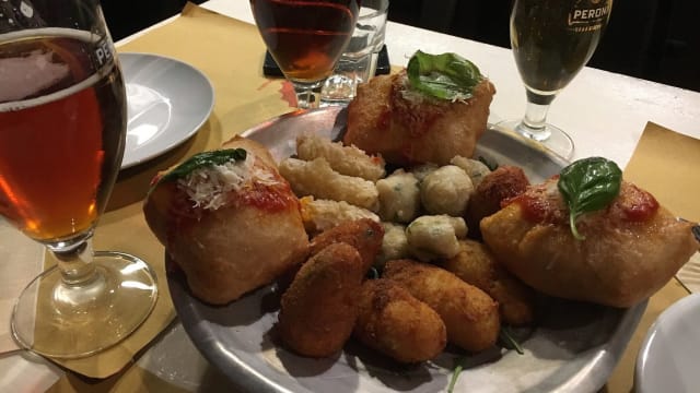 Zeppoline alle erbe, crocchè, arancini