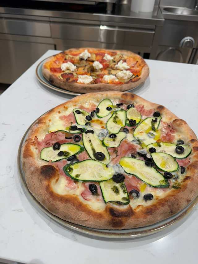 - Fiordilatte, prosciutto cotto, zucchine, olive