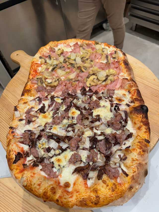 - Pomodoro, fiordilatte, radicchio, salsiccia, ricotta affumicata