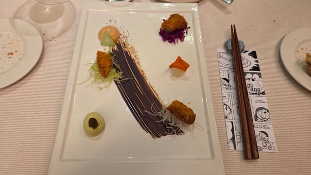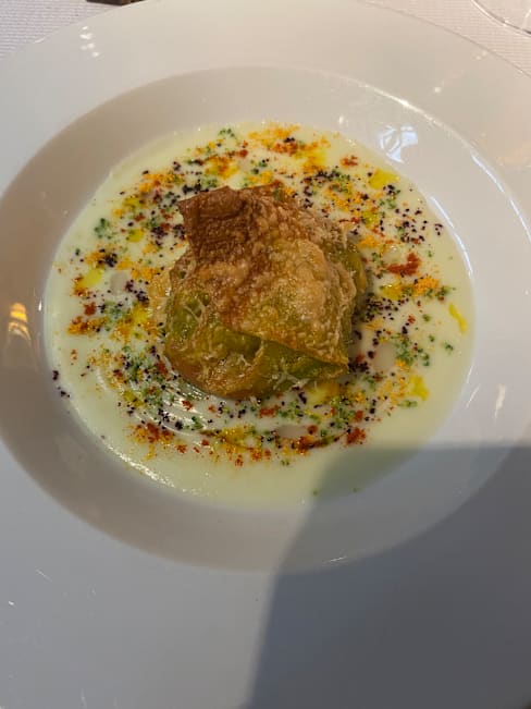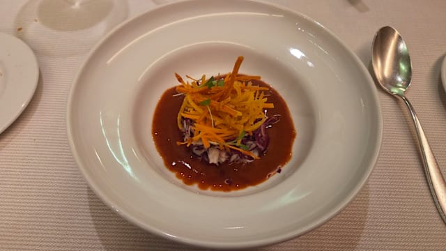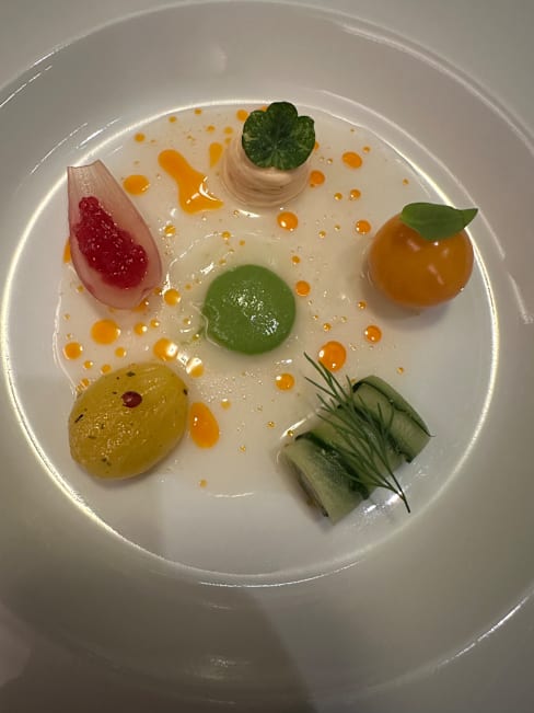 10/10As the servers were describing each dish and the ingredients, you can almost taste the course. The first bite of each course abounds with the complimentary flavors of the various ingredients! We had the lunch tasting menu and added a glass of white wine as chosen by the staff. The staff were all knowledgeable about the course they each presented. We enjoyed meeting the various servers. Besides the food and staff, our final highlight was meeting one of the chefs and having a chance to ask questions about our meal. The restaurant is deserving of its Michelin Star! You won’t be disappointed!