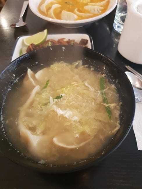 8.5/10Dumplings we're very good, but I wish we had gotten them in the soup because that dish looked even more delicious. We had 2 noodle dishes that were very generous, but didn't have a ton of flavour. The service isn't very fast, but the waiter was very kind and we had a fun evening