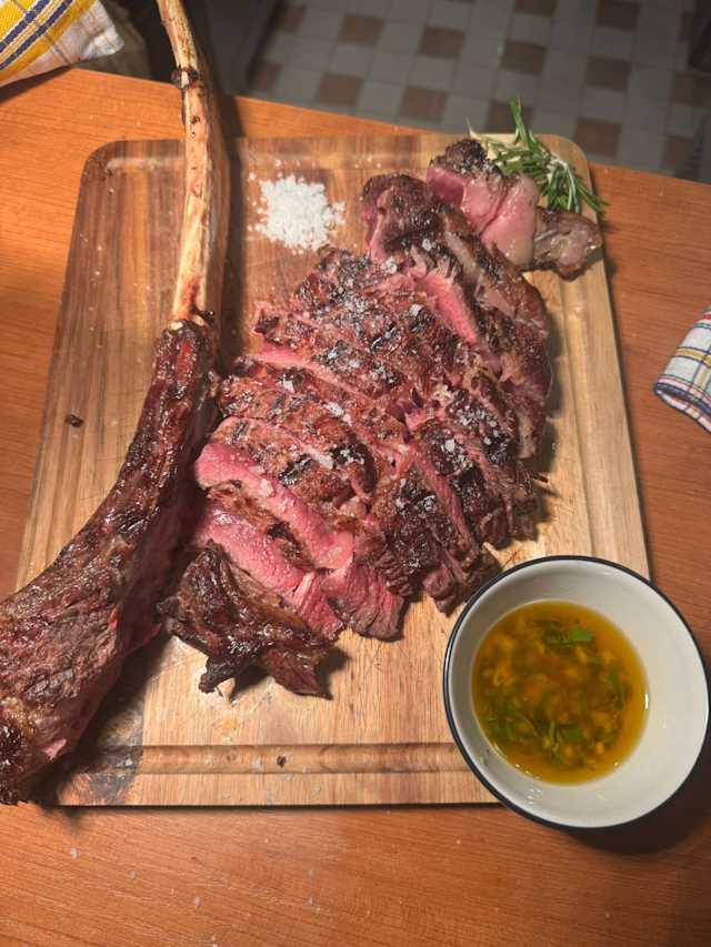 - Tártaro de novilho e tutano com foie gras, servido em pão de massa-mãe