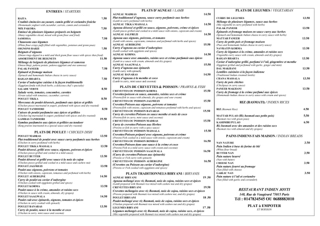 9/10My wife and I really enjoyed the Samossas, the Poulet Tikka Masala, the Poulet Saagwala, the Garlic Naan, Butter Naan and the Rice with Peas. The owner/waiter provided wonderful and very personal service. He also told us his wife prepared all of the food. Everyone else in the restaurant appeared to be enjoying the very personal experience we had.