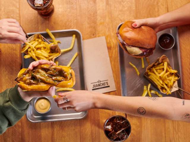- De miércoles a viernes, en el horario de comidas (exclusivamente para comer en local). Elige tu burger preferida, o un juanchocata, o también pluma y te invitamos a minipostre y una bebida, por el mismo precio que el del plato principal seleccionado