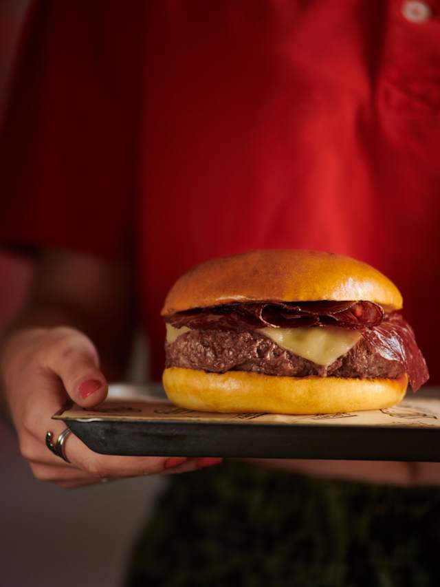 - La hamburguesa que es una oda a nuestros orígenes: cortes seleccionados de auténtica carne de buey de el capricho, queso havarti fundido y salsa demiglace de jugo de carne. 100% pasión.