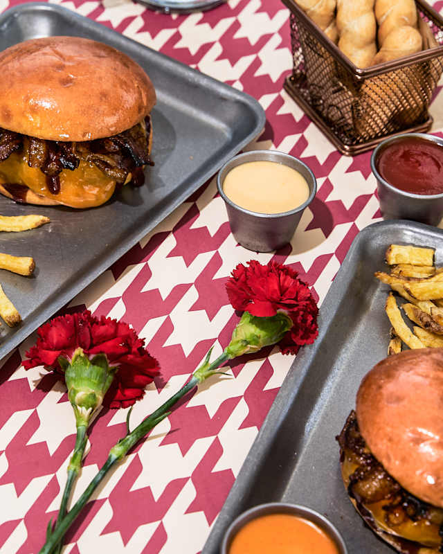 - La hamburguesa más gastronómica: 220g de cortes seleccionados de buey de el capricho, havarti fundente y cecina premium. Con patatas fritas en aceite de oliva.