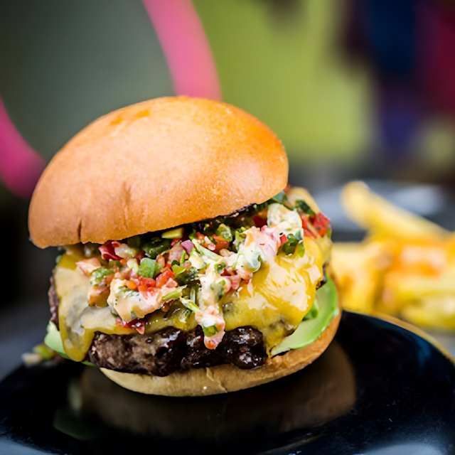 - 200g de carne, cheddar, pico de gallo con habanero y aguacate. Acompañada de nuestra salsa juanchopotle y patatas fritas caseras en aceite de oliva.