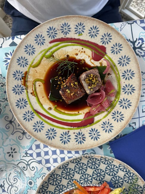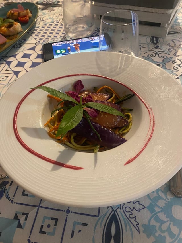 7/10I was disappointed with the limited vegetarian options available. Among the few choices, I opted for a pasta dish, but it failed to impress. The pasta lacked any unique or remarkable flavors, and I couldn't understand how the price of 16€ was justified for such an underwhelming dish. As someone who appreciates vegetarian cuisine, I expected more creativity and quality from the restaurant. Moreover, I found Juncu e Luna to be quite pricey overall. The lack of value for money became even more evident considering the mediocre pasta dish. The prices didn't seem justified based on the quality of the food and the overall dining experience. Another issue I encountered was the lack of adequate ventilation during hot days. Despite the restaurant's proximity to the sea, there was no refreshing sea breeze to alleviate the heat. Not a single fan was installed, which made it uncomfortable to dine in such conditions. Given the coastal location, it would be expected that measures would be taken to ensure the comfort of guests, especially on hot days.