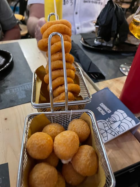 9.5/10Because the guys wanted to go for a burger, we ended up here. The food and service is very good. We had a starter plate Jungle, an onion burger, hot burger and Texas BBQ ribs. Good burger meat, nice tast of the ribs. Coming back next week.