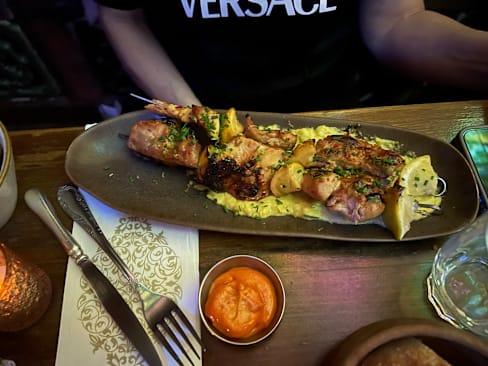 2.5/10DO NOT GO HERE! The food that we received was completely inedible. Me and my mum both ordered chicken skewers which to be honest just tasted like raw chicken which was quite concerning, it was definitely thigh meat rather than breast and it just tasted of lemon with chunks of lemon on the skewer which was not mentioned on the menu. The waitress kindly offered to swap our meal for another so we decided to give this place another chance. However when our second meals came we were just as disappointed and could barely eat any of this. I received a pasta dish which seemed to just be cheap shop bought pasta with some tomato purée mixed with it to make a ‘sauce’. This sauce was too thin to even cover the pasta so essentially it was like eating plain pasta. The cocktail was the only thing I could consume really. This was probably the worst meal of our entire life and ruined our first night in Paris unfortunately as we just felt ill afterwards.