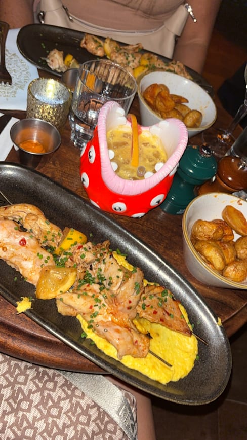 8/10The chicken was hardly cooked. Not much variation in the menu. Great starter though. Service was fantastic, except being asked if I wanted dessert with only five minutes left of my booking! If I'd been told earlier I might have ordered it. Not keen on using the same toilets as guys, doesn't seem safe to me! Love the videos on the walls and ceiling, an immersivd experience.