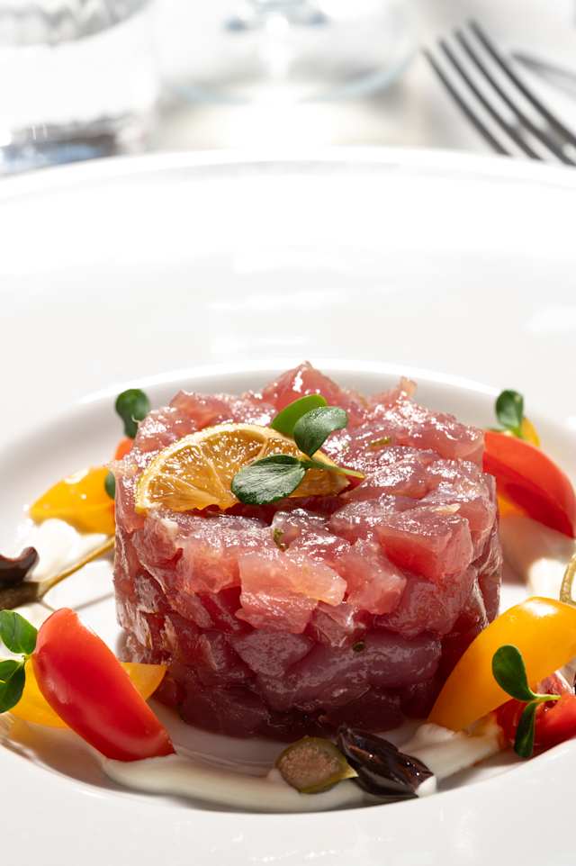 - Tonno, sale, pepe, olio, limone, pomodorini, yogurt greco, olive taggiasche .