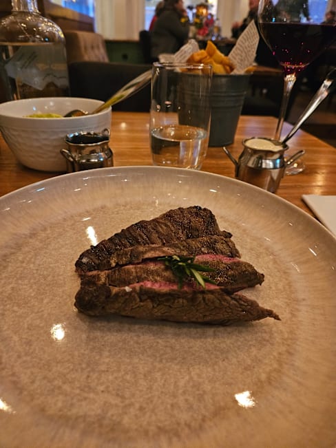 8/10Great quality food and nice atmosphere. Picking your own steak knife from a roll of knives felt a little gimmicky without an explanation of the different type, but made for a good conversation