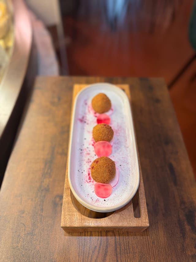 Doppio hamburger jutt', lonza piastrata, ravanello e maio viola