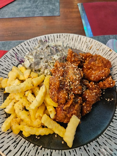 10/10Get the soy and garlic fried chicken. It's the best fried chicken in all of Lisbon! 🍗 If you prefer beef, the bulgogi is "orgasmic" ❤️🔥 the banchan is a great side to add on for some Veg