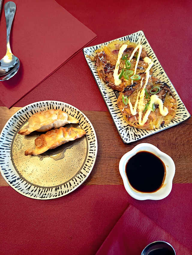 - Sopa de Tteok (bolo de arroz), Courgette, Cebolinho, Ovo e Mandu (dumpling Coreano), com recheio de Vegetais, Massa de Batata Doce e Tofu.