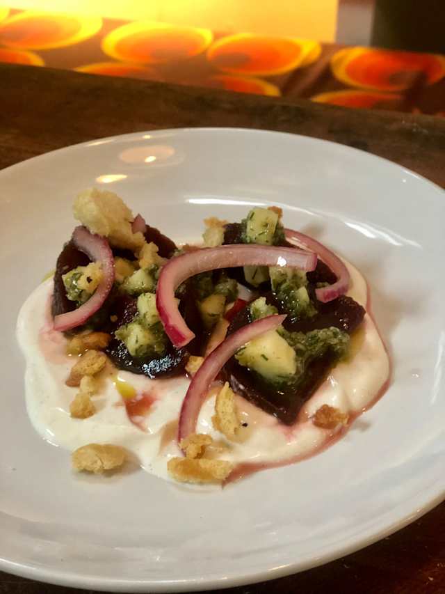 Met gegrilde venkel, hazelnoten, rode peper & rucola