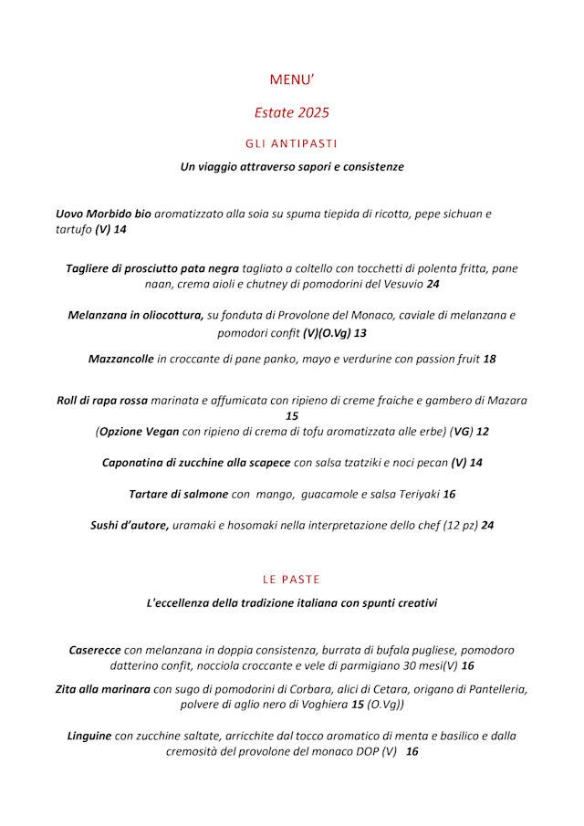 10/10Great dining experience. Very Zen and peaceful ambiance. Wonderful attentive service. Cuisine was innovative with amazing flavors and presentation. A must visit when in Pompeii.
