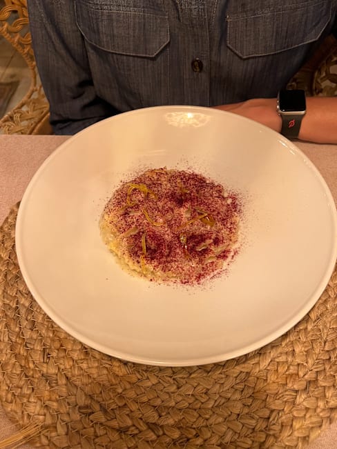 10/10+1Beyond amazing... best meal of my life, ever. Service was incredible and made us feel like we were their only priority. Appetizers were fantastic, the menu was explained every step of the way... every question answered and explored. The kindest staff on the planet, made accommodations for us and the dog that followed us from our hotel.... felt like family. Wine list was exceptional and highlighted local fare. Wonderful narrative on places maitre D traveled and how similar experiences inspired the fusion creation of the chef. Bathrooms top notch, beat atmosphere and decor I've ever seen, just an awesome experience. Local limoncello, creative and unique flair on traditional dishes. Exceptional attention to detail, quality high end service. If this isn't 3 michelin stars I don't know what is. Get there experts, you'll never be disappointed. Pasta was out of this world, sushi to boot. Risotto with seafood had the best calamari I've ever tasted, Just incredible!!