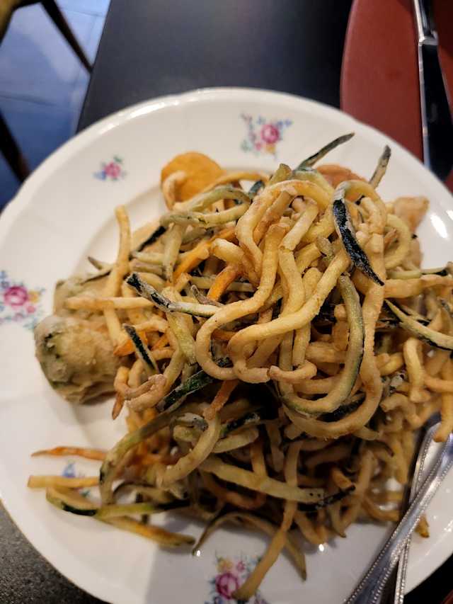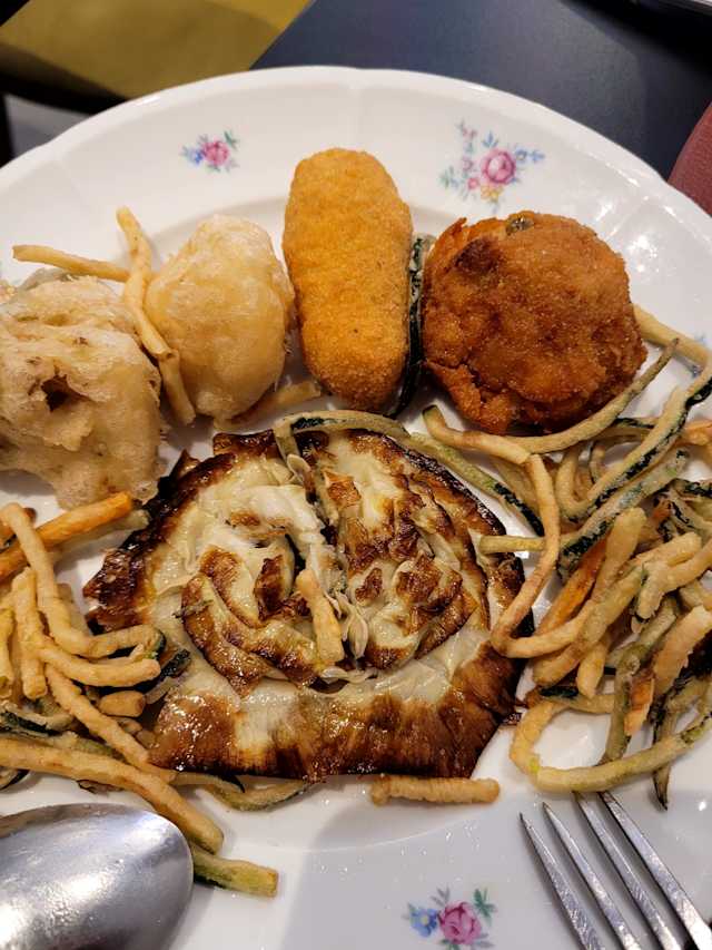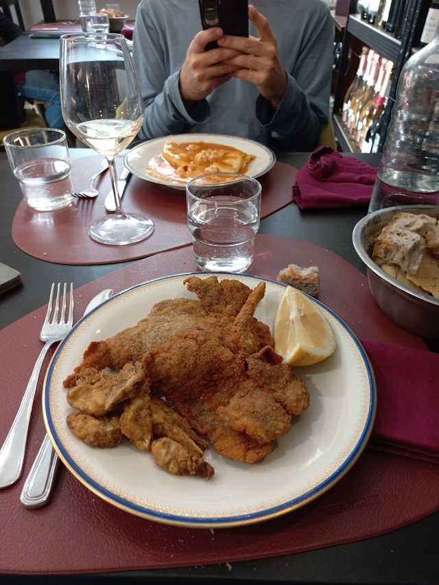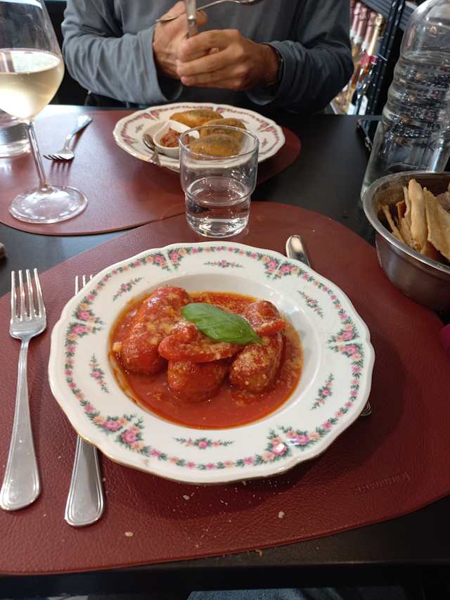 10/10A substantial discount via The Fork motivated us to try this restaurant. It's well off the beaten path -- but a number of buses take you right there. We ordered: parmigiana di verdure miste sfizio romano di trippa tagliolini alla pescatora tonnarelli all'amatriciana The dishes were very tasty and the pacing of service was quite good. For wine, we had a bottle of Borgo Canedo I Gigli Ribolla Gialla 2023 followed by glasses of Cusumano Nero d'Avola 2022 and Federici Piazza del Cielo Cesanese del Piglio. The ribolla gialla had an overwhelming taste/aroma of grapefruit and was disappointing. The nero d'avola was quite good while the cesanese was a bit bland. We had a very nice dinner and would be happy to revisit -- with or without a Fork discount.