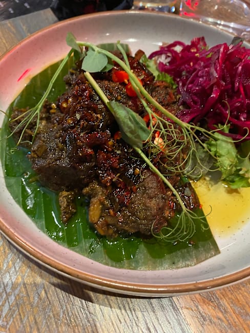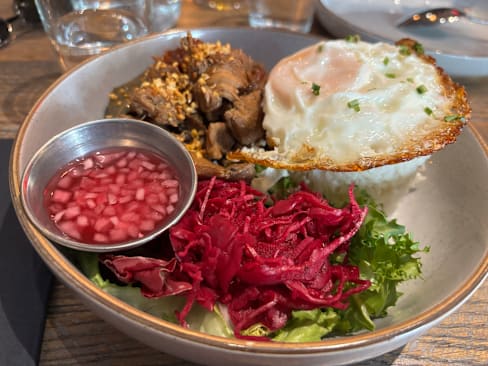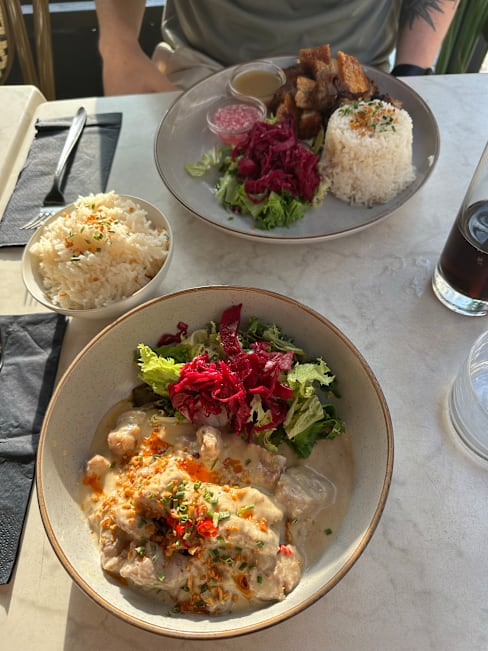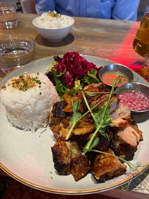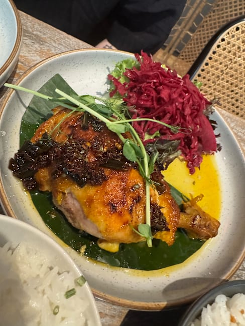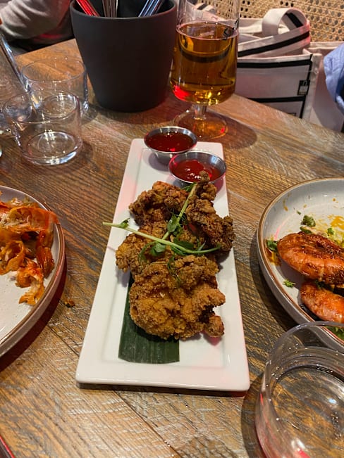 6/10The service at the restaurant was very good and the stuff was very kind. The restaurant itself was pretty small and way too loud for my liking. Between other costumers being very loud and the music it was hard to enjoy my time there. The best thing on the menu in my opinion is the fried chicken, so juicy and well executed, wish it was a main and not just an appetiser! The pork belly was also good, but the portion a bit too big. Shrimps and pork coconut curry get a no for me, with the first dish being too ”fishy” and lacking in flavour and the second being very bland. Mocktails deserve a praise however! Overall an ok experience, fun place to visit but I will probably not come back.