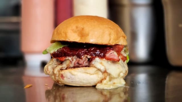 - Haché de boeuf des hauts-de-france, fondu de mimolette paris roubaix fermière, émincé de champignons marinés au vinaigre de cidre, échalotes et ail, oignons fris, véritable sauce cocktail maison (alcoolisée), pain faluche artisanal.