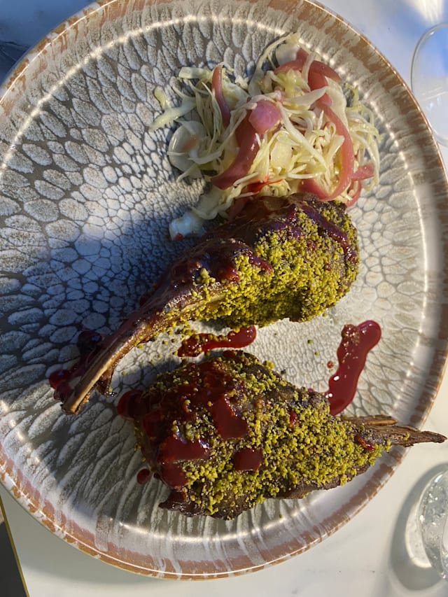 Agnello in crosta di pistacchio e riduzione ai frutti rossi
