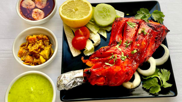 - Cuisse de poulet marinée dans une sauce au yaourt, aux herbes fraîches et aux épices rouges légèrement citronnées