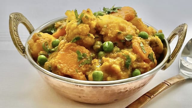 - Poulet mariné dans une sauce au yaourt, grillé dans le four tandoor, cuit à nouveau dans une sauce avec des tomates, des piments verts et parfumé au coriandre fraîche