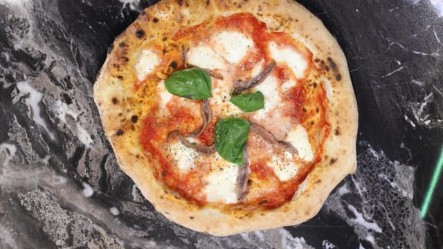 Pomodoro san marzano, fior di latte, fichi secchi, gorgonzola DOP, crudo san daniele stagionato 24 mesi