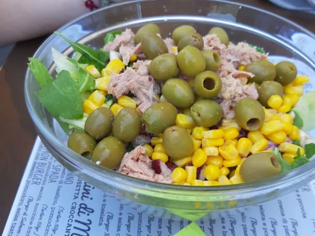 Lattuga, pollo grigliato, crostini, scaglie di grana, salsa cesar.