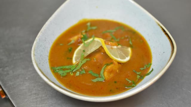 Con ajo, comino, tomate, pimientos y salsa especial balti