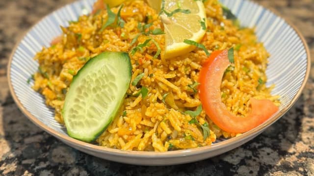 Cocinado con arroz basmati, cardamomo, tomate, jengibre y mas especias