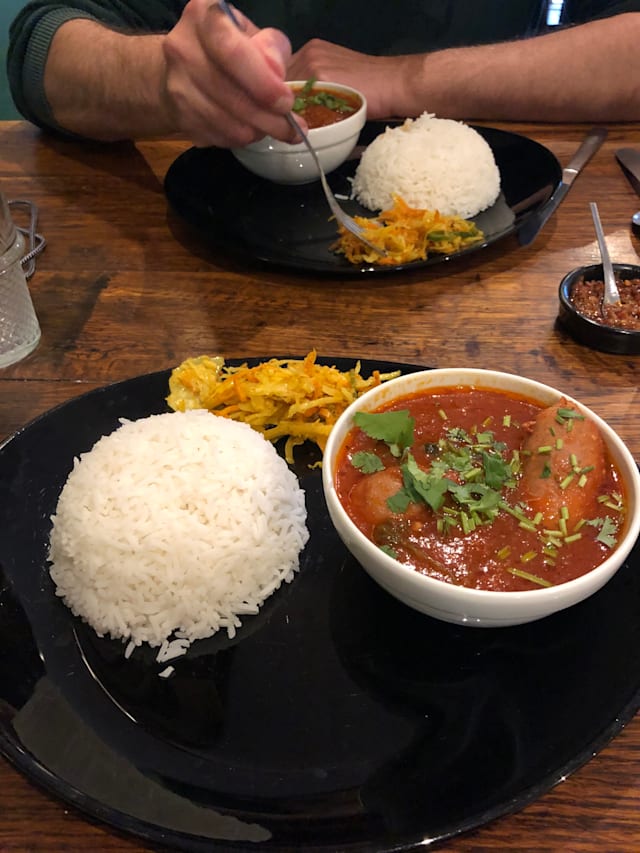 10/10As soon as we entered the restaurant the atmosphere was very Mauritian, compared to the grey and rainy city outside. We shared boulets de chou chou to start and they were delicious, so umami and a lovely lemongrass-chilli sauce on the side. My husband had the rougaille saucisse and I had rougaille poisson, both wonderful. An unexpected highlight of the meal was the flan coco we had for dessert: rich, thick and coconutty at the top then creamy and indulgent down to the perfectly bitter caramel at the bottom.
