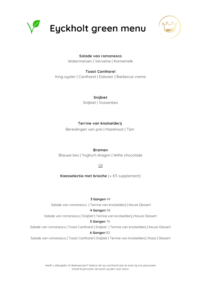 10/10We had a super nice evening in Kasteel Eyckholt! Many thanks to Souad for the great service! The food was excellent and varied. We were there as a couple and had ordered a 5-course menu. This is also a very good Eventlocation!