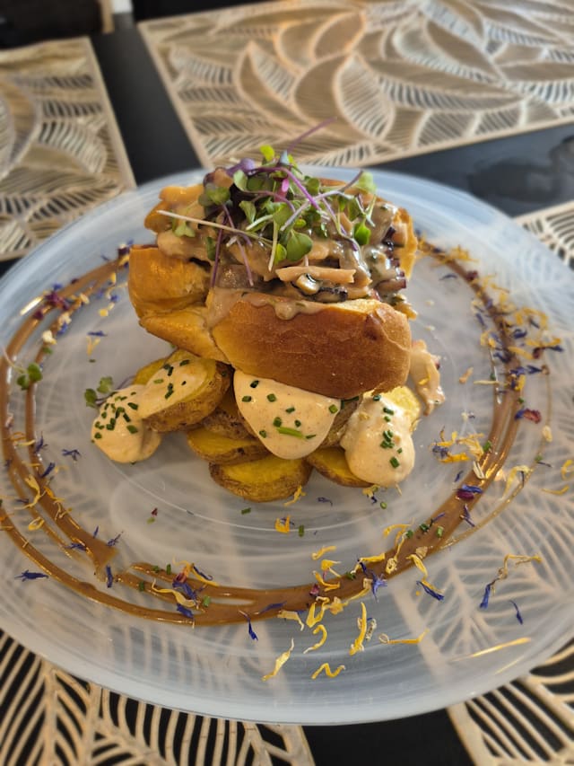 8/10Our first time at this restaurant and it was great! Good quality food, warm and friendly staff and efficient service. A mix of cuisines in one menu which made it interesting. No vegetarian option for main course so I had a salad, which was good! The samosas were tasty too. ????