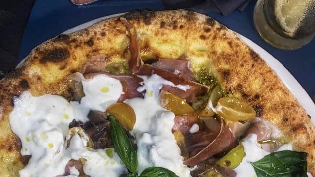 Crema di pistacchio, mozzarella, funghi porcini, prosciutto crudo, friarielli, bresaola.