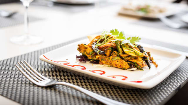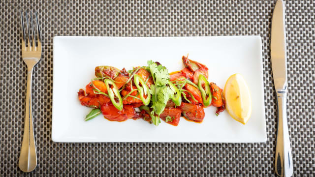 Marinado con especias y hierbas nepalesas. Servido con salsa goan