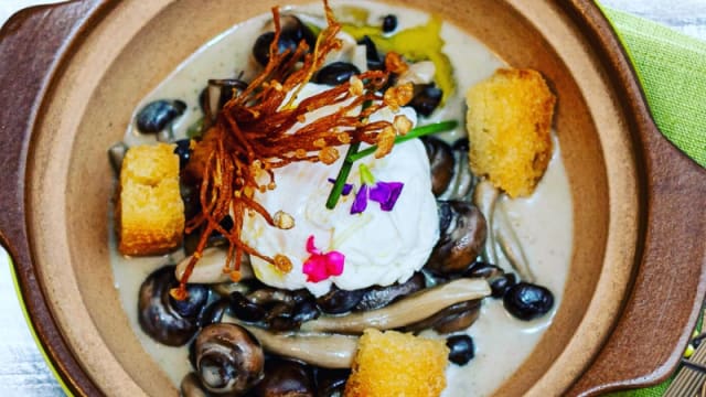 con huevo pochado atrufado y picatoste