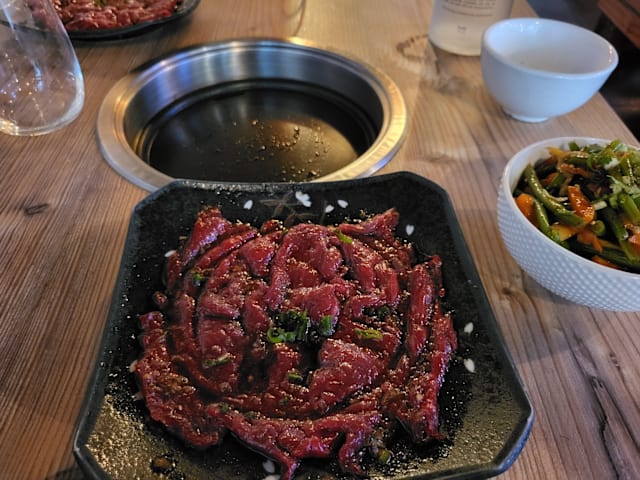 4/10Well I checked all photos online how all food looks like, so I could imagine that they pursue a kind of fusion Korean style. But seriously 2 main dishes we ordered didn't taste like Korean food at all, no Korean ingredients and the meat for both dishes were really tough to chew. Very disappointed. Maybe for someone who never tried real Korean food gave good reviews, but sorry.. you can NOT say that it is Korean restaurant!