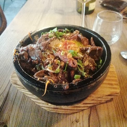 4/10Well I checked all photos online how all food looks like, so I could imagine that they pursue a kind of fusion Korean style. But seriously 2 main dishes we ordered didn't taste like Korean food at all, no Korean ingredients and the meat for both dishes were really tough to chew. Very disappointed. Maybe for someone who never tried real Korean food gave good reviews, but sorry.. you can NOT say that it is Korean restaurant!