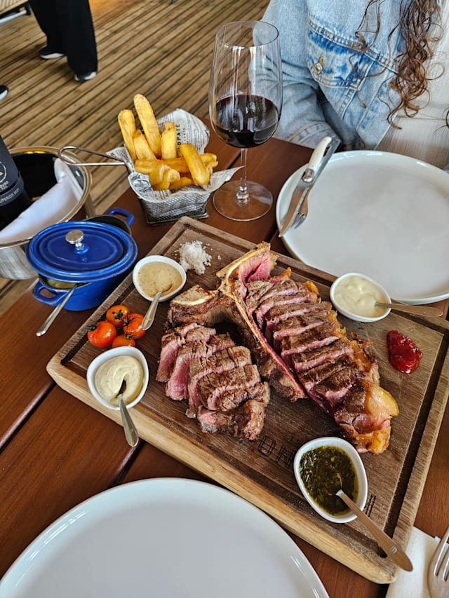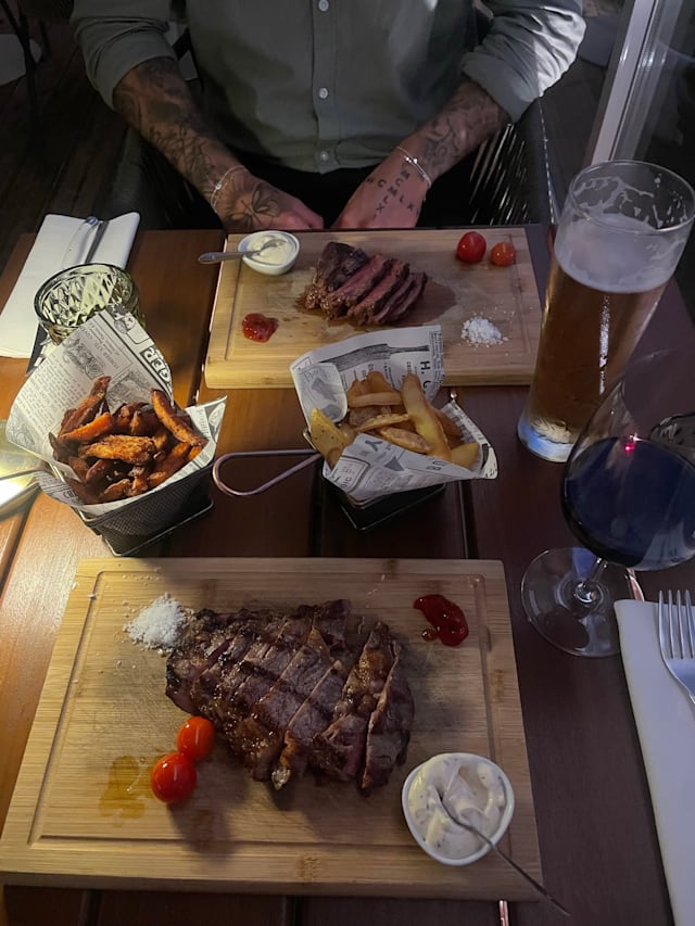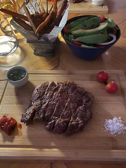 5/10For a steak house, the steaks were inedible, always have steak medium rare, our first steaks (Entrecôte) were so tough, I was told it’s the marbling running through the steak but I’ve had many steaks and even better frying steak from a regular supermarket. The steaks were replaced this time my husband’s steak was raw not rare and like a piece of leather not soft like butter, so he couldn’t eat that, mine was a bit better and ate it but not the best. Unfortunately it put a dampener on the evening. Shame as it was my husband’s birthday and we are only here for the weekend. I’m a chef in London and have worked with many cuts of meat. Being a “Steakhouse “ you should change supplier otherwise you are going to get a lot of steaks being returned.