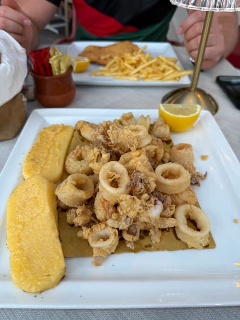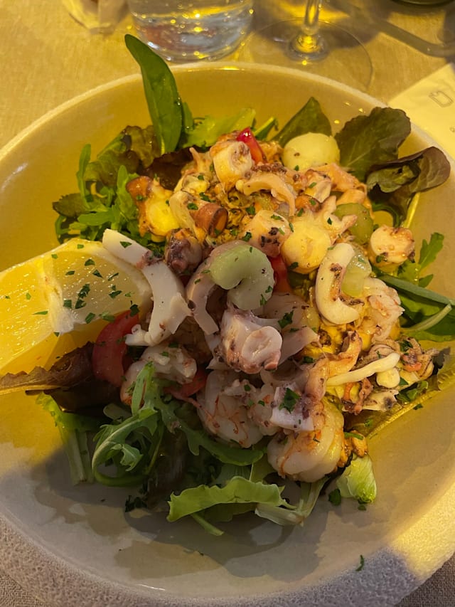 4.5/10We booked a table for 3 persons at 21.45 via the 'thefork' app. We were seated straight away, after ordering our beverages from the first waiter, the manager arrived to take our and informed us that there would be a 45 minute wait. After 45 minutes our food had still not arrived, we were told to wait another 10 more minutes, in the end our food arrived 30 minutes after the initial 45 minutes. The gnocchi was bland and the mixed fried fish was over salted. Service was friendly and polite, but this could not make up for the long wait and the mediocre food. Cleanliness seemed not of importance and when I finally payed the bill the manager did not allow me to pay via the 'thefork' app where I could not use the 20 euro discount.